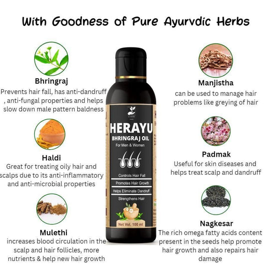 Herayu Bhringraj Ayurvedic Hair Oil Promote Hair growth, Hair Fall Control For Men & Women (Pack of 2)